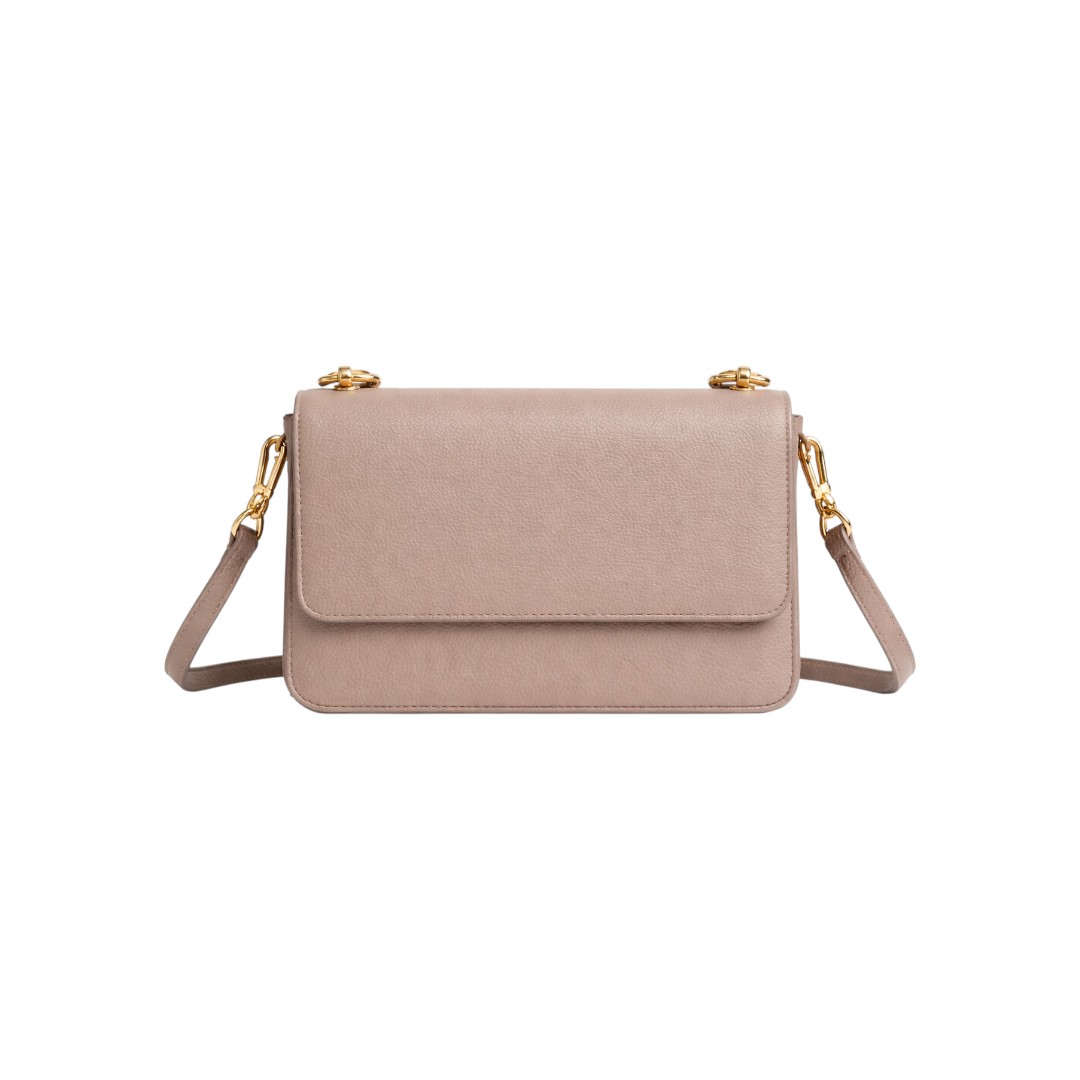 This elegant taupe crossbody bag is crafted from high-quality PU leather with a smooth and refined finish. The sleek flap design combined with gold-tone hardware gives it a modern and sophisticated look.