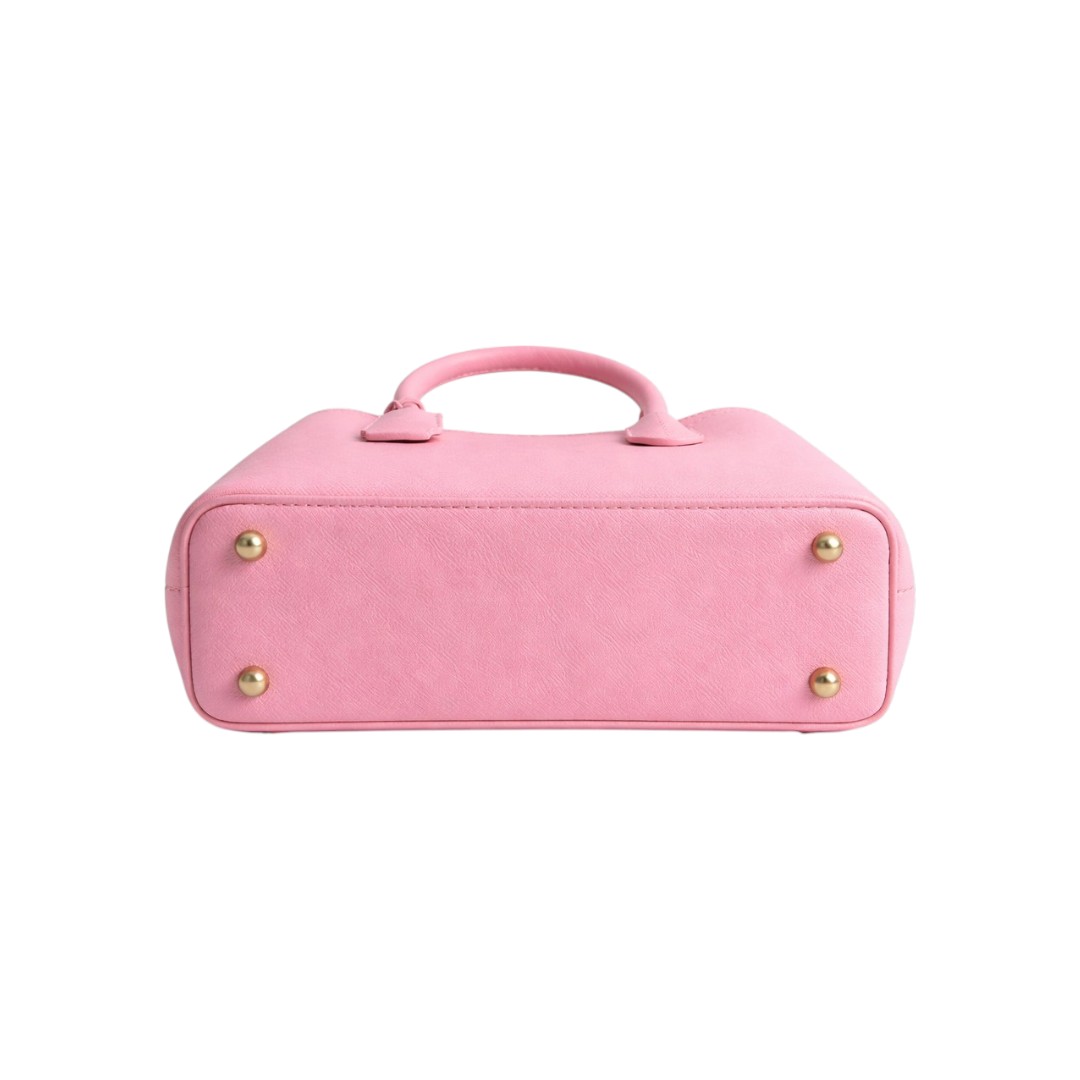This elegant pink handbag is crafted from high-quality PU leather with a smooth textured finish, offering a clean and sophisticated look. The structured design with sturdy top handles makes it perfect for both casual and formal use.